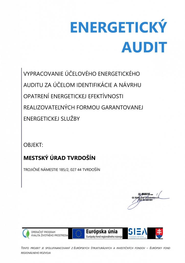 Energetický audit verejnej budovy v meste Tvrdošín - Mestský úrad